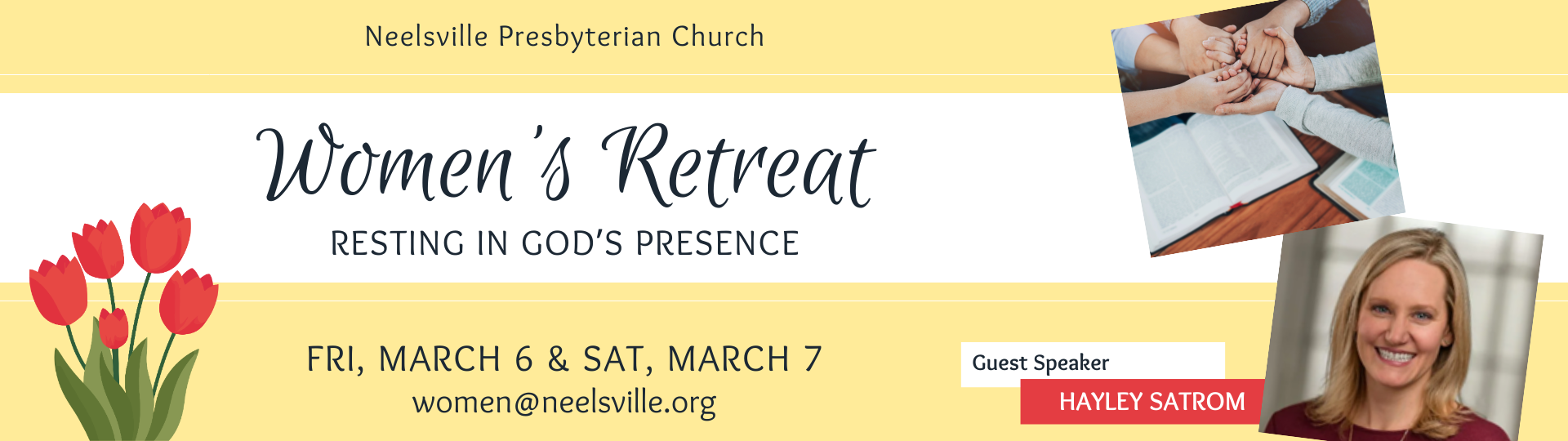 If paying by check, make it payable to Neelsville Presbyterian Church and note "Women's Retreat" in the memo. Checks can be mailed to the Church Office or placed in the offering plate.