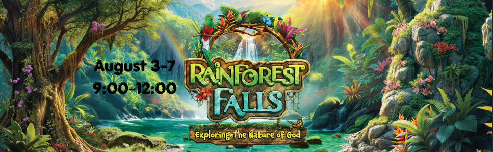 EXPLORING THE NATURE OF GOD!Reveal the beauty of God's creation and His love for us.Rainforest Falls VBS at Neelsville Presbyterian ChurchDates/Times: Monday through Friday, August 3-7 from 9:00 am-12:00 pm. Snack provided.